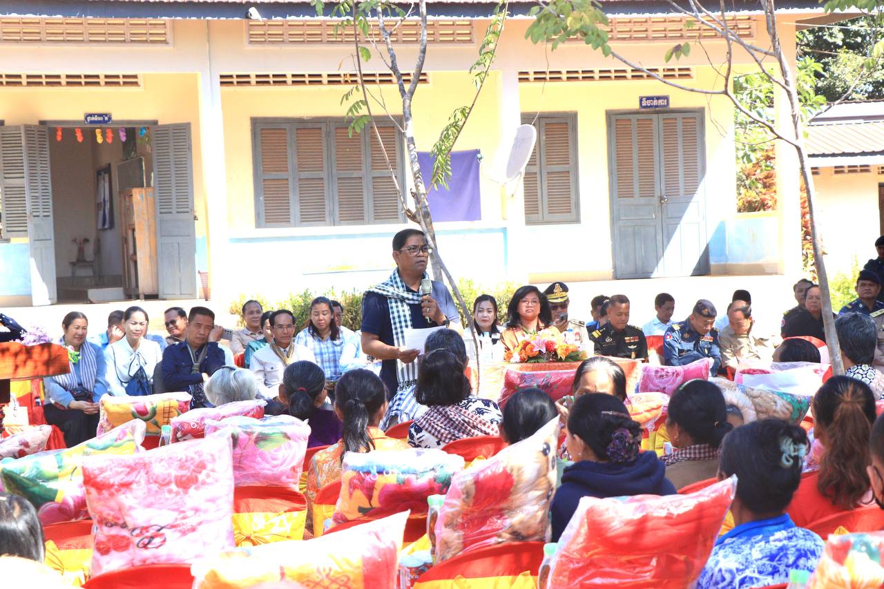 ឯកឧត្តមបន្តថា ភាពក្រីក្រប្រទេសណាក៏មានដែរ ប៉ុន្តែទោះជាយ៉ាងក៏ដោយ អាជ្ញាធរមូលដ្ឋាន មិនដែលបោះបង់បងប្អូនចោលនោះឡើយ ហើយក៏មិនទុកឱ្យបងប្អូនណាម្នាក់ស្លាប់ ដោយគ្មានអាហារហូបនោះទេ។ នេះហើយជាការខិតខំប្រឹងប្រែងរបស់ថ្នាក់ដឹកនាំ ចាប់តាំងពីថ្នាក់លើរហូតដល់ថ្នាក់ឃុំ ភូមិ គឺជាអ្នកដែលនៅជាមួយបងប្អូន រួមសុខរួមទុក្ខជាមួយបងប្អូនគ្រប់កាលៈទេសៈ។ហើយ អំណោយទាំងអស់នេះ គឺគ្រាន់តែជួយដោះស្រាយការលំបាកបានមួយគ្រាប៉ុណ្ណោះ កត្តាដែលសំខាន់នោះសូមឱ្យបងប្អូនរកទទួលទានដោយខ្លួនឯងបន្ថែមទៀត ទើបធ្វើឱ្យជីវភាពគាប់ប្រសើរ។
